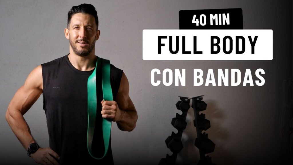 40 min – Entrenamiento Full Body con bandas elásticas: incluye calentamiento, trabajo de cuerpo completo y vuelta a la calma.