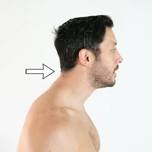 2. Coloca la cabeza sobre el tronco, como si un hilo invisible tirara de ella hacia arriba.