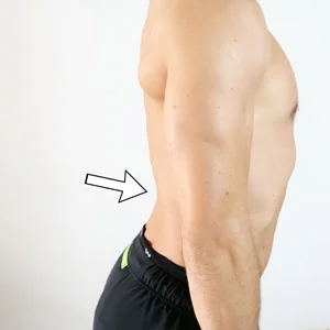 Variación: realiza el estiramiento con el brazo extendido para aumentar la amplitud y mantener la tensión entre 30 y 60 segundos.